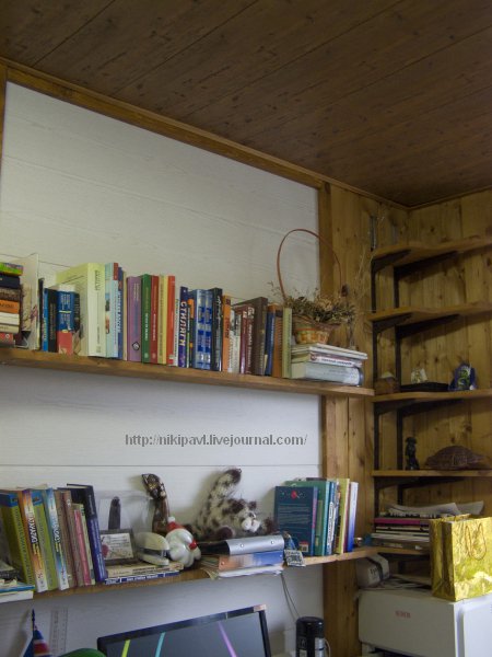 Это мой потолок на моей же кухне. Обжитая уже, как лет 10. Деревянные жалюзи (слева) не дают Солнцу возможности нагревать "жаркую" кухню. Справа где декоративный блокхаус) капитальная стена, за которой "кабинет студентки 3 курса", следовательно - высота стен до потолка в этих двух помещениях...