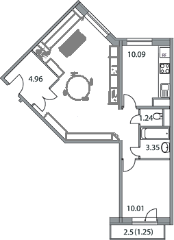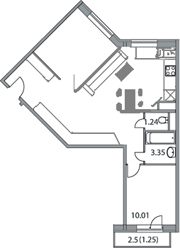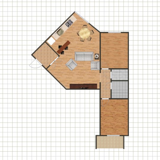 Купили 2х комнатную квартиру такой планировки. Планируем сделать 2 спальни, т.е. кухня будет перенесена в проходную комнату и будет выполнять так же функцию гостиной. Но как лучше поделить пространство? Хотелось бы иметь диванную зону и полноценную кухню, а разделить все это барной стойкой (от обеденного стола мы отказались) Помогите пожалуйста)))