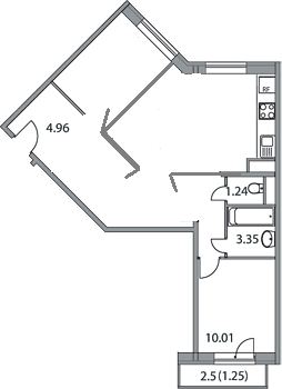 Расположение кухни, конечно зависит от того куда вам подведут слив и воду для кухни. Но вот такой вариант.