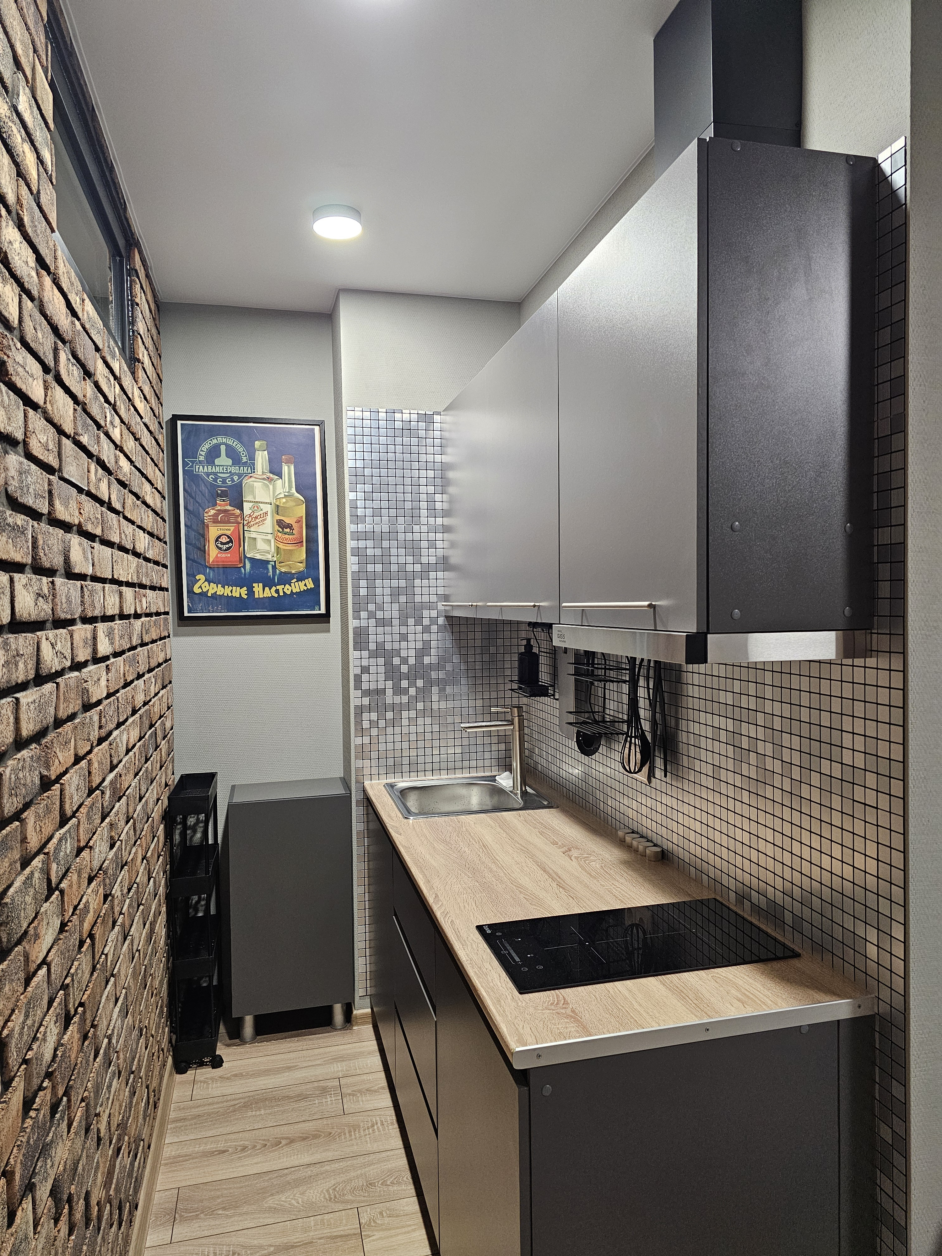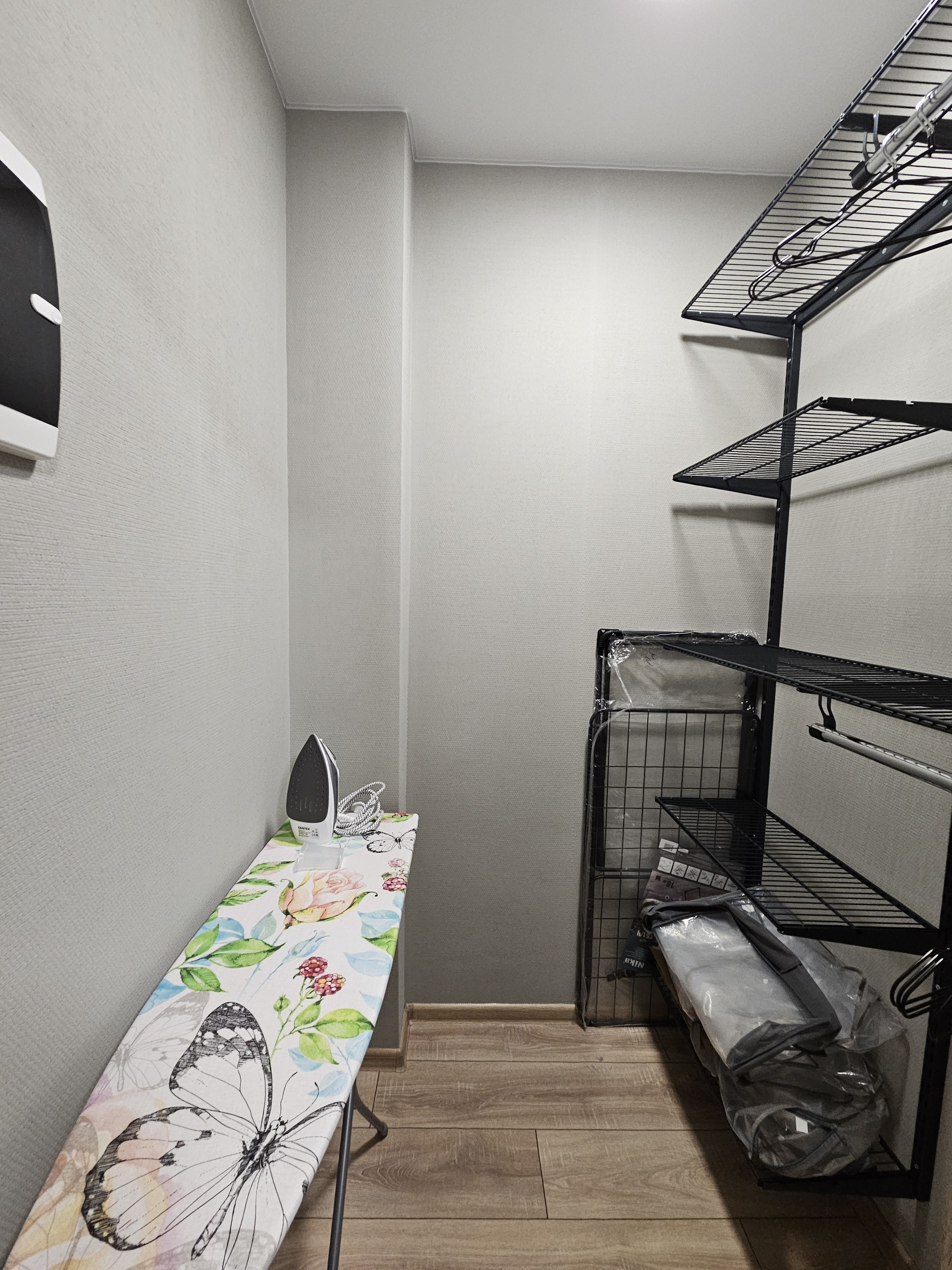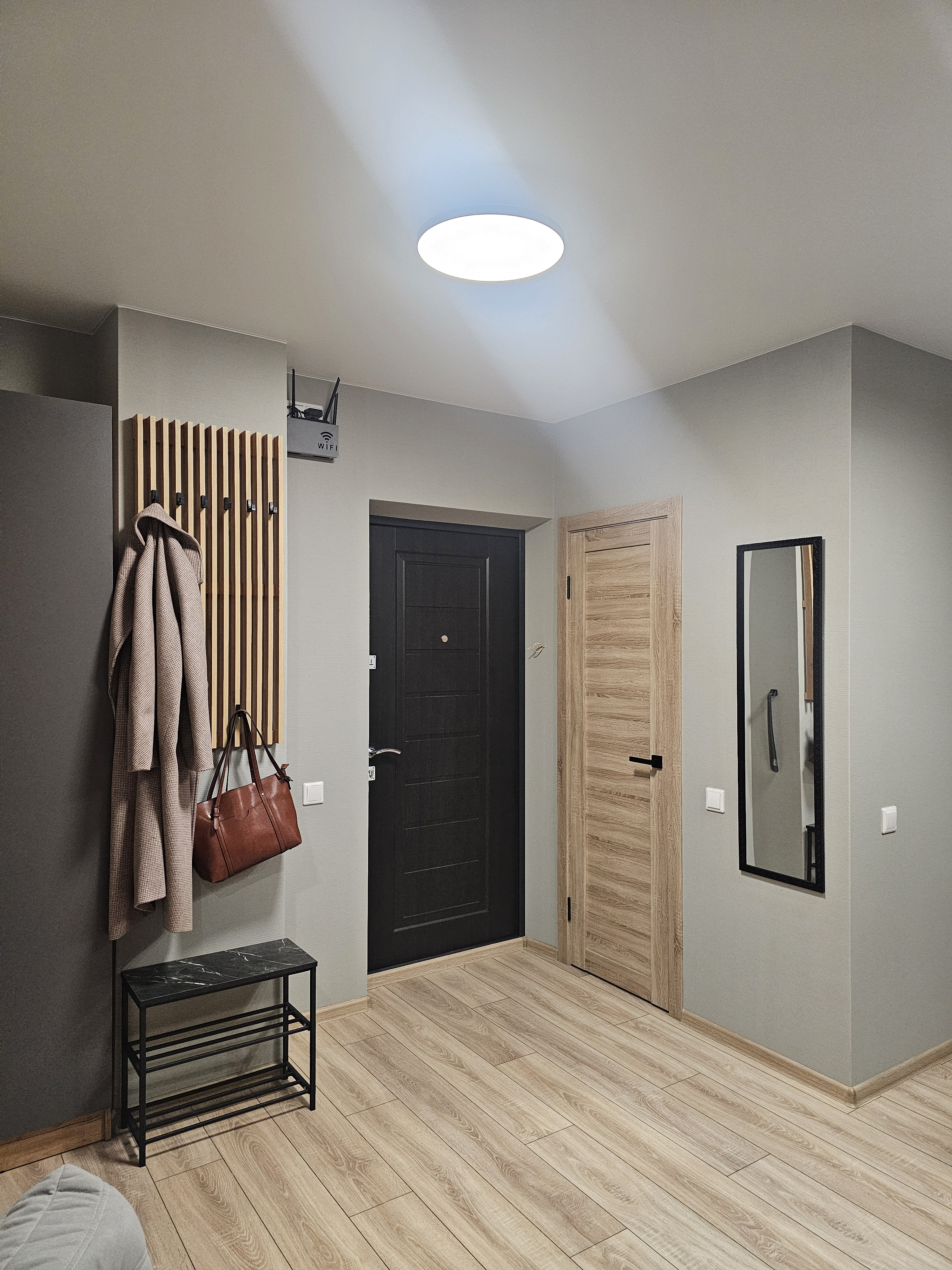 Квартира сдавалась без внутренних перегородок, за исключением санузла. Стены санузла не переносили, мокрые зоны тоже, кирпичная стена возведена из облицовочного кирпича, остальные перегородки из газоблока. На стенах стекло обои, достаточно толстые и плотные с возможностью окрашивания в 12 слоев, одинаковые по всей квартире, окрашены краской в 2 слоя. Ремонт очень бюджетный, мебель с маркетплейсов, в частности кухня в зоне готовки за 11000р, в зоне холодильника за 8500р, мойка и техника отдельно, конечно, но тоже все по скидкам. Фартук кухонный из самоклеющейся мозаики металлирированной 20 листов 30 на 30 см около 3000р, двери с фурнитурой около 28000р за 4 штуки и все остальное в самом бюджетном диапазоне. Осталась пара штрихов и будет полностью готова, фото пока рабочие. Ремонт делали своими силами с привлечением специалистов по электрике, сантехнике и потолкам.