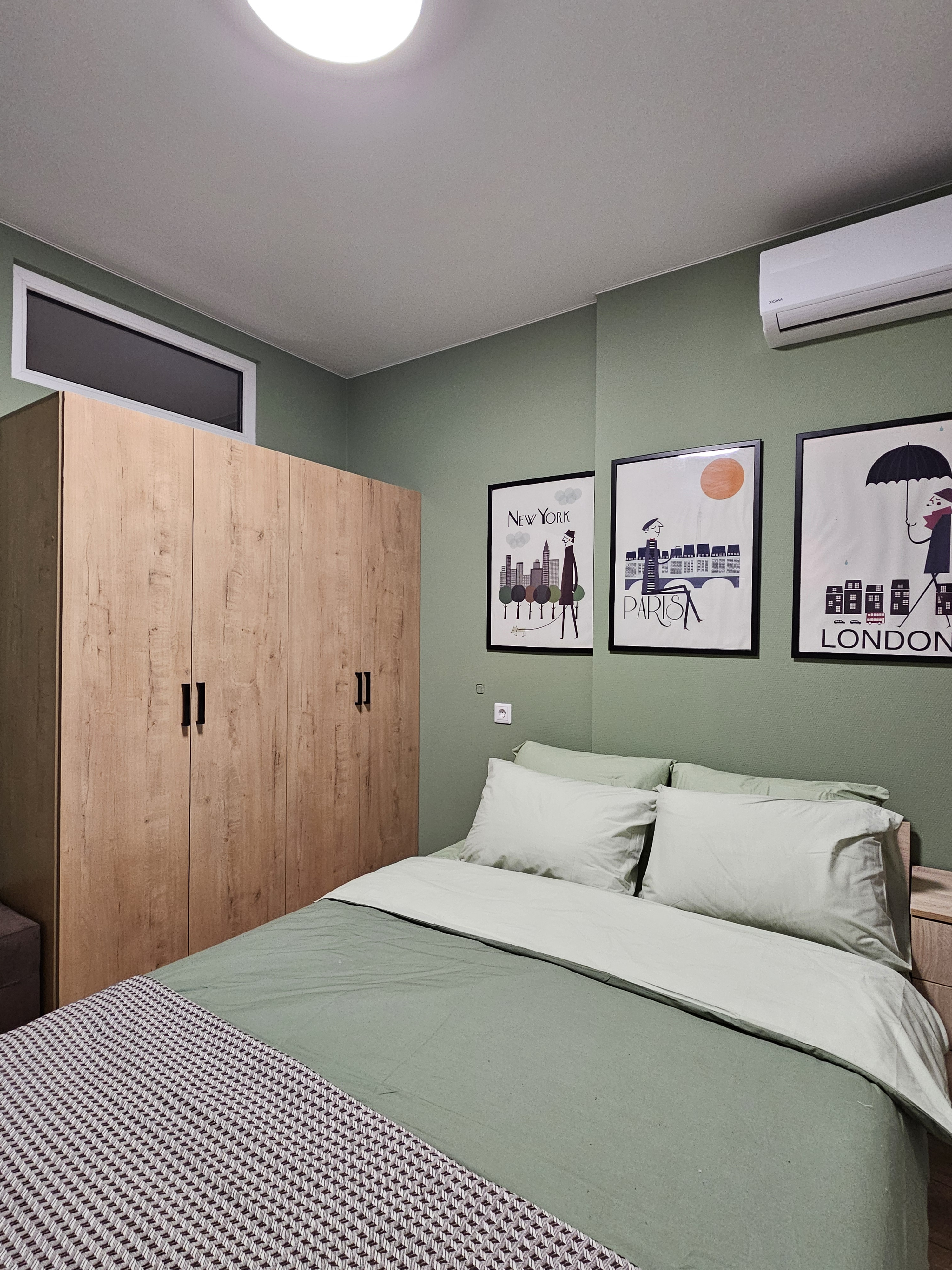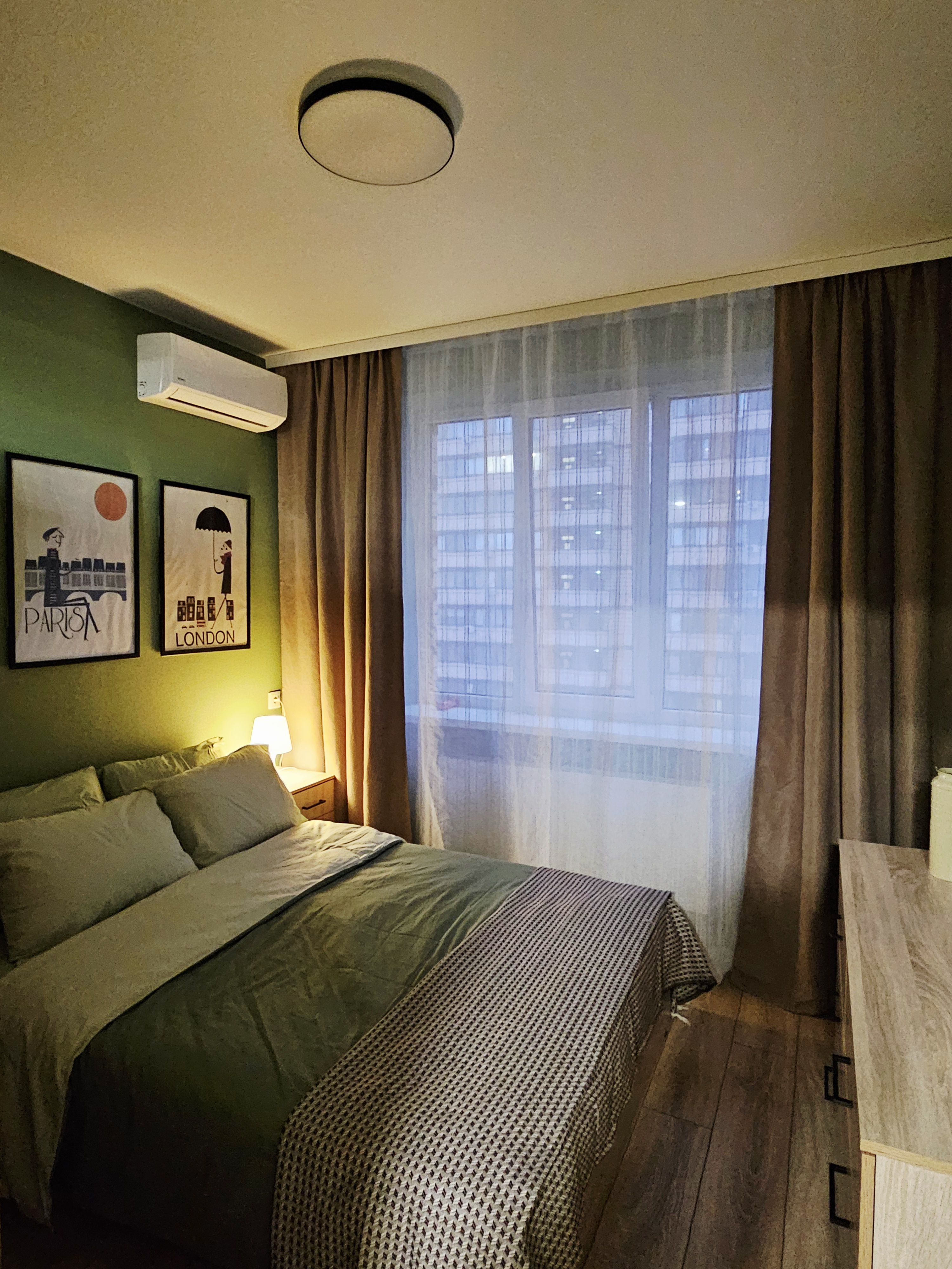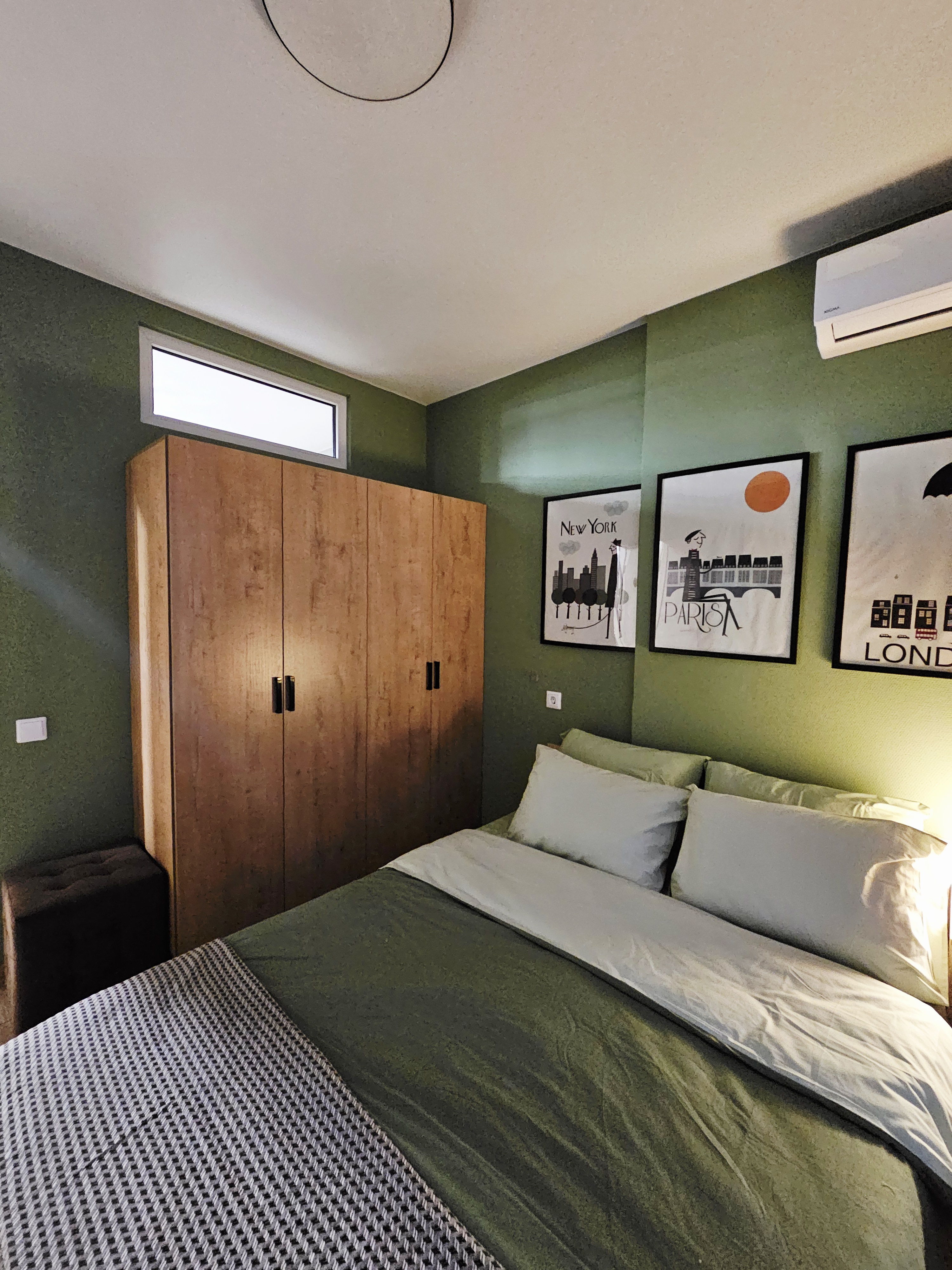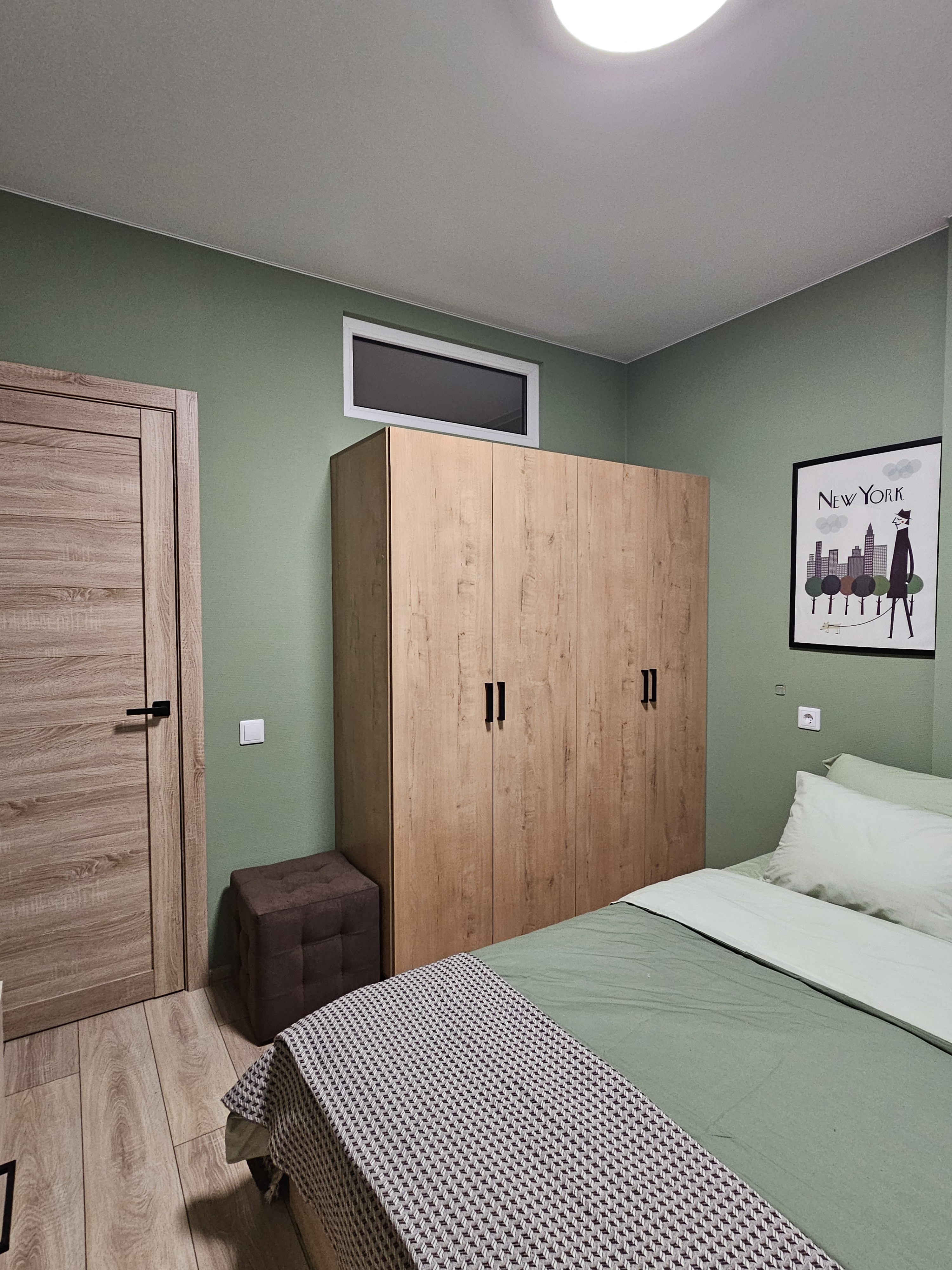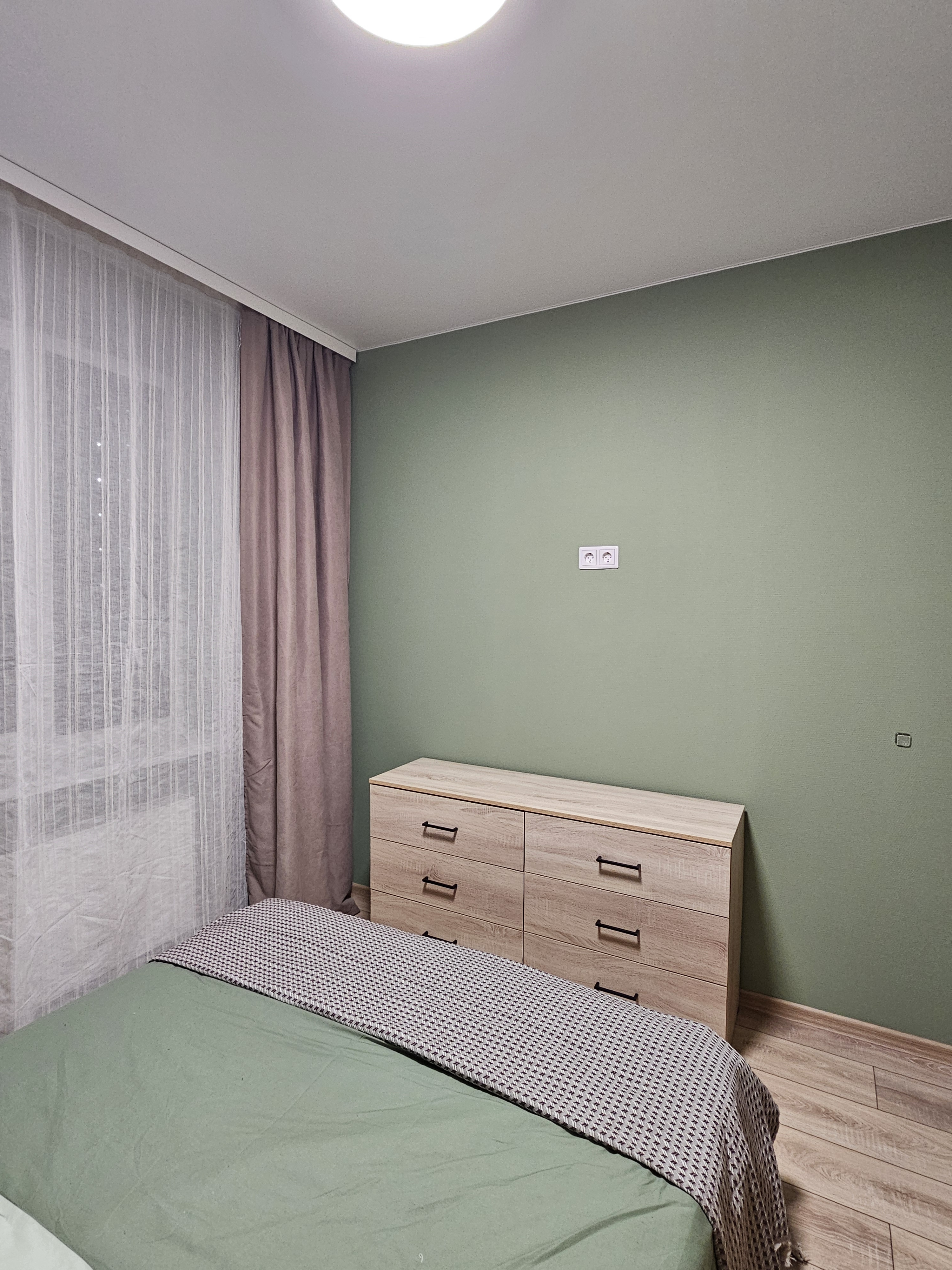 Зелёная спальня. Кровать шириной 160 см, вместительный гардеробной шкаф и комод