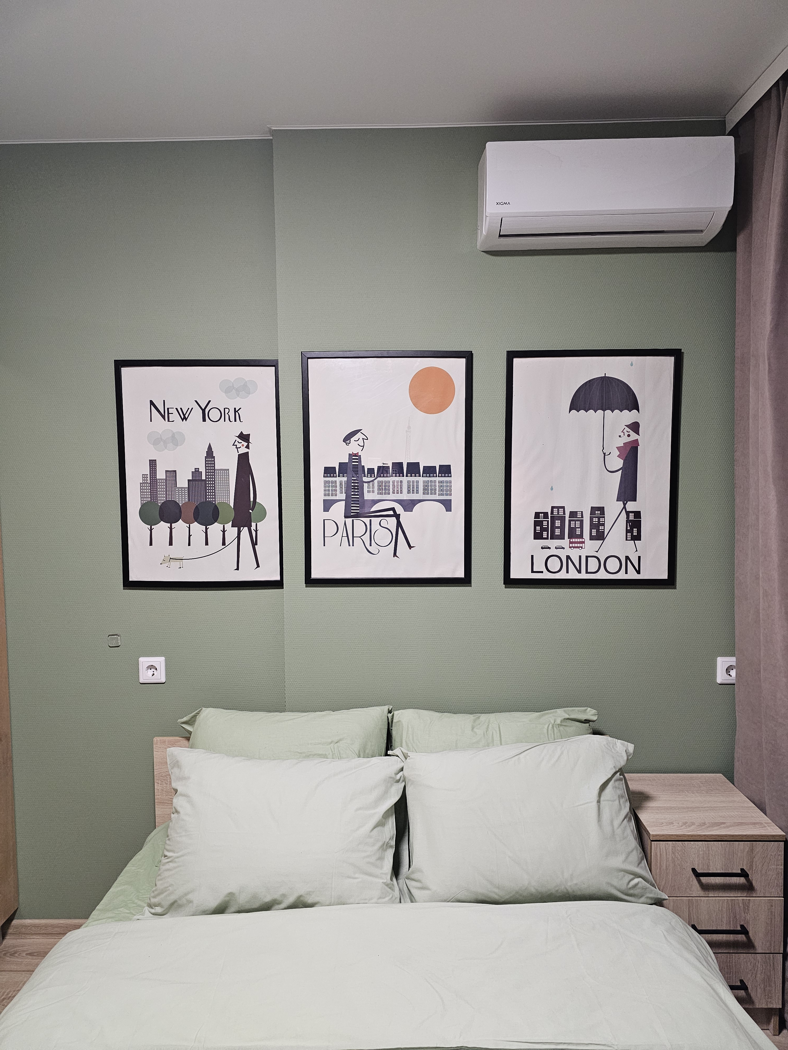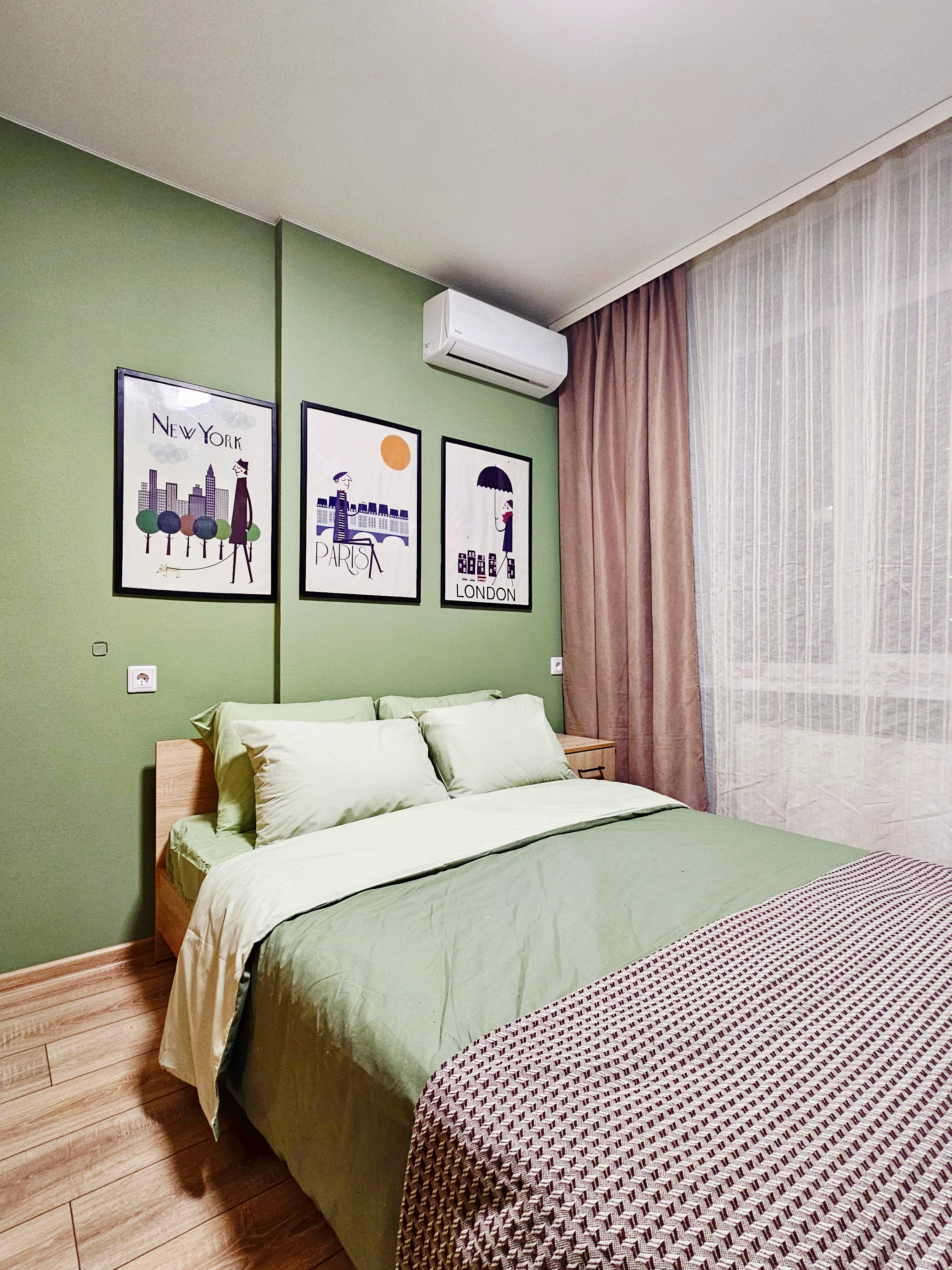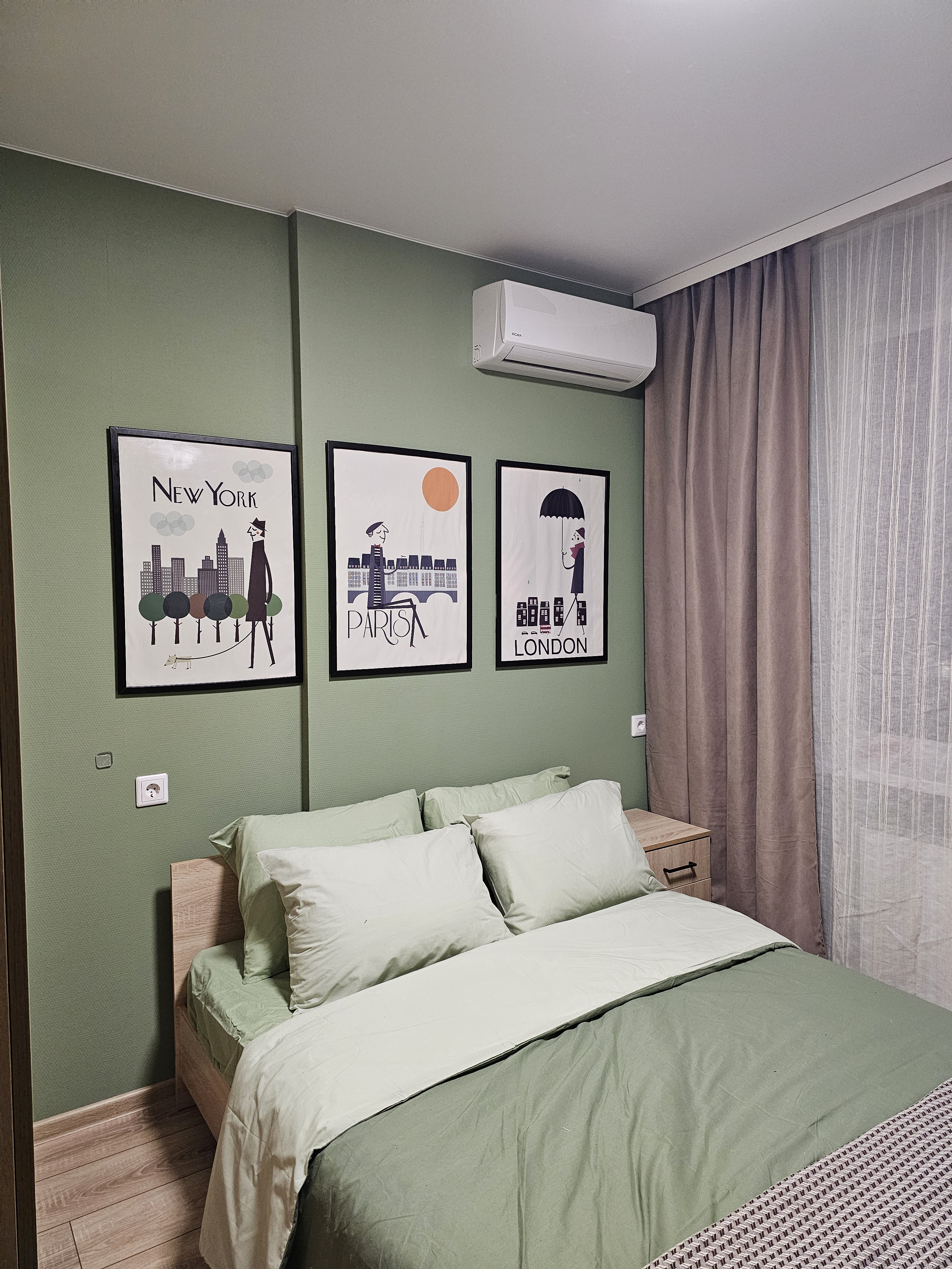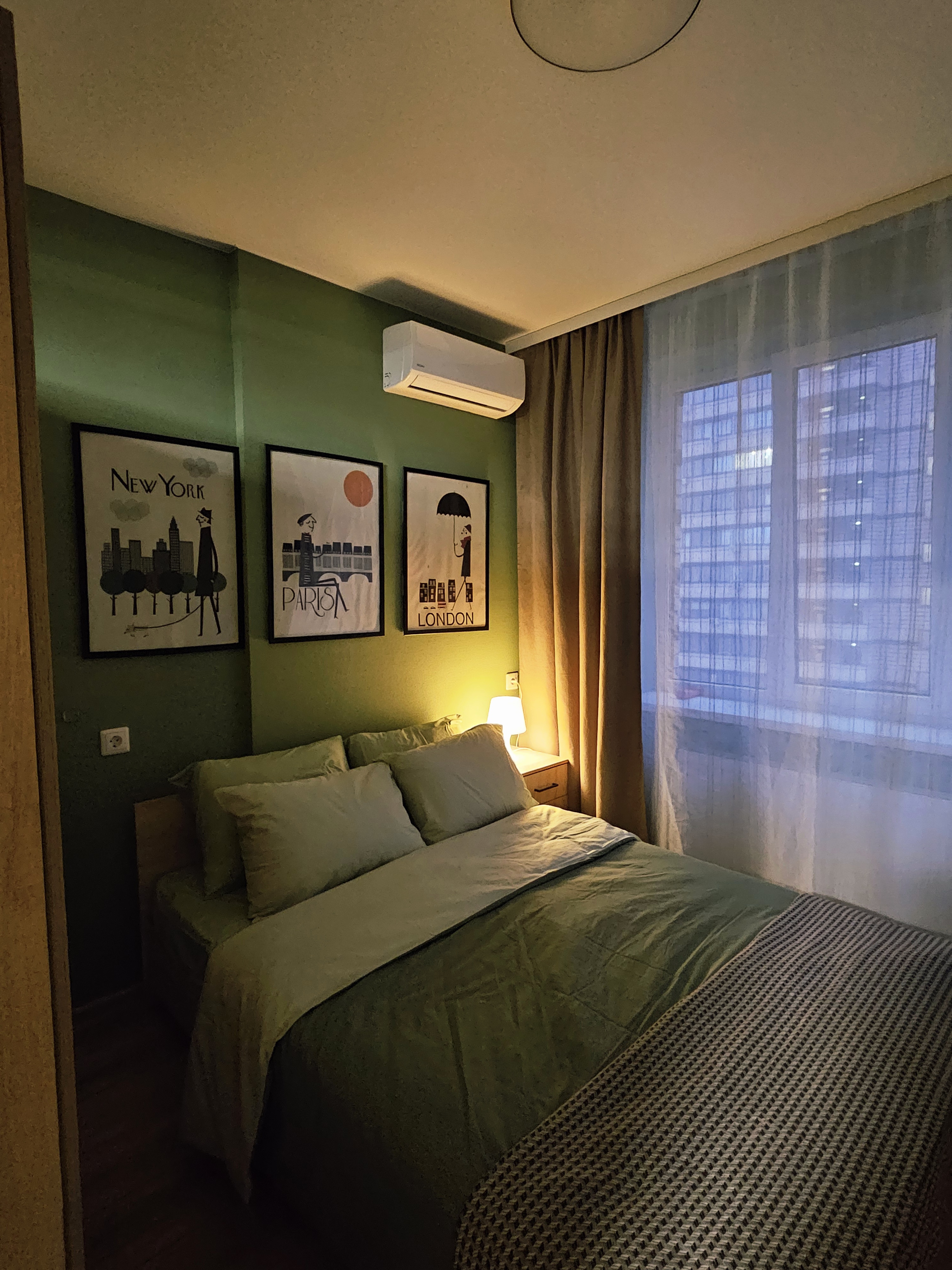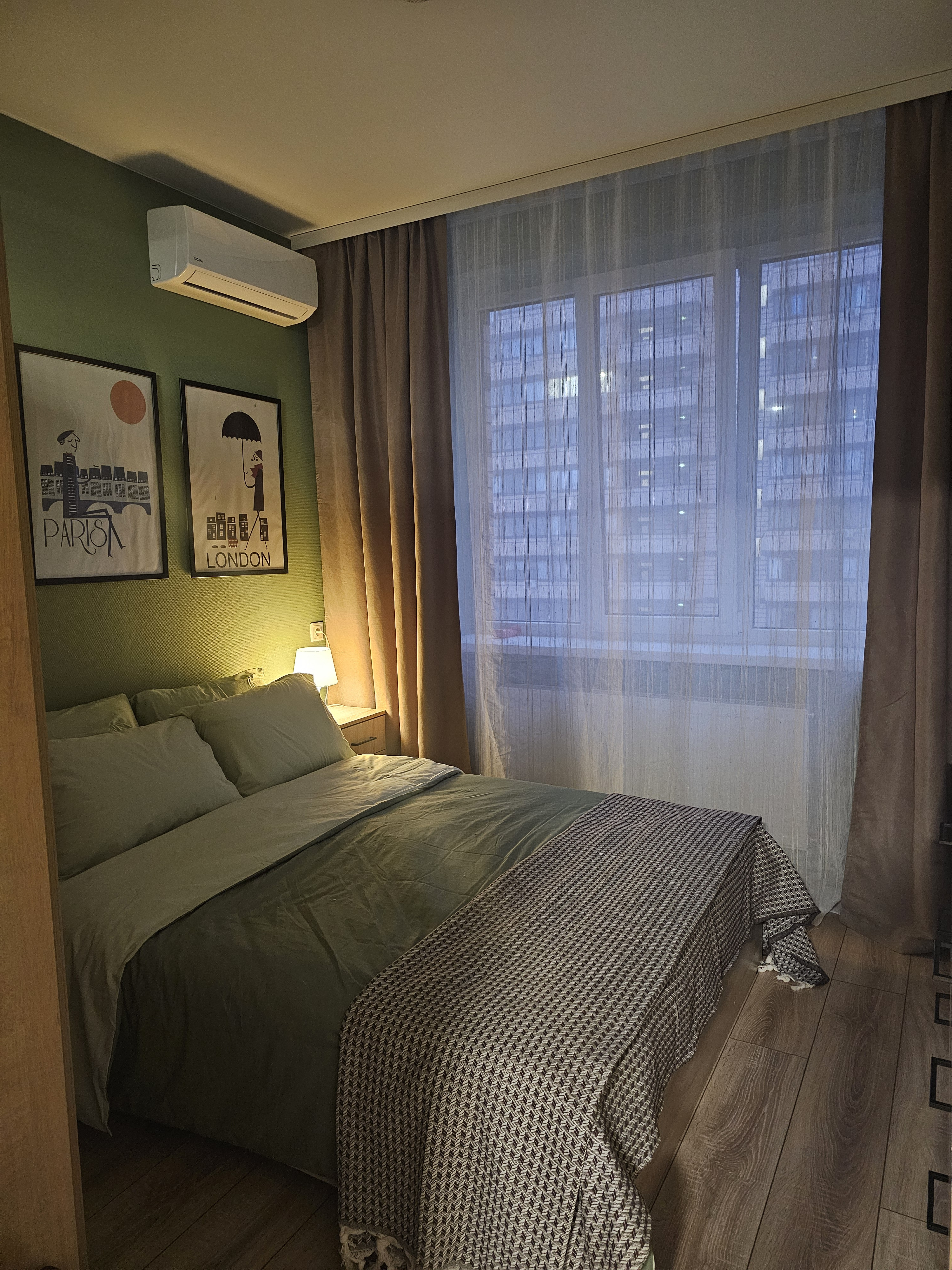 Зелёная спальня. Кровать шириной 160 см, вместительный гардеробной шкаф и комод