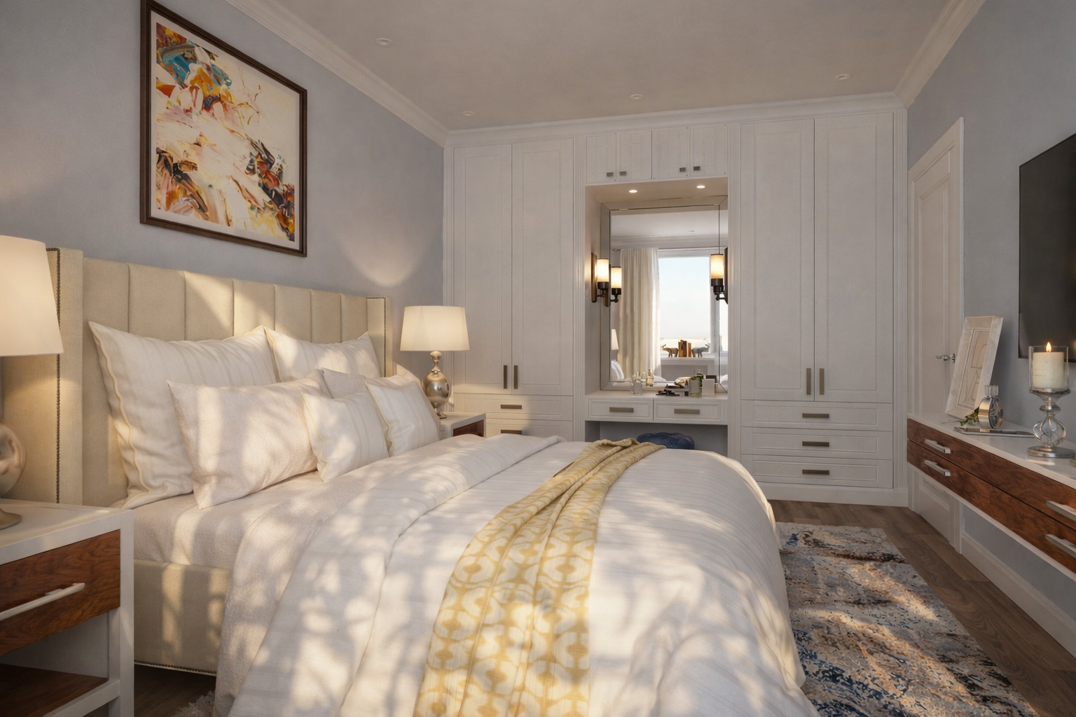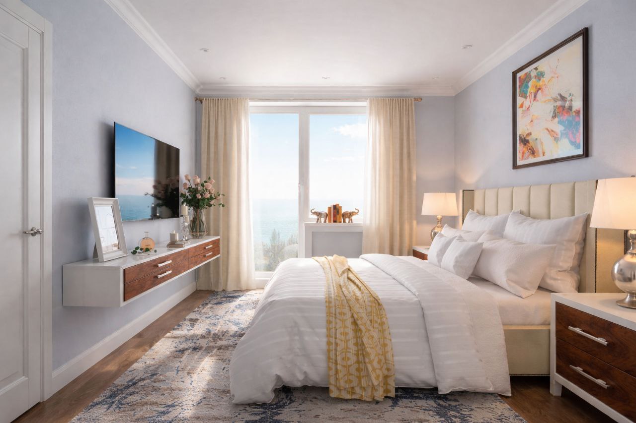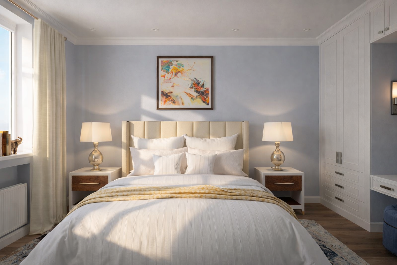 Очень уютная спальня получилась. У всех вопросы к столу наверно из-за ножки, кажется, что она тяжелая и стол не сдвинуть с места.