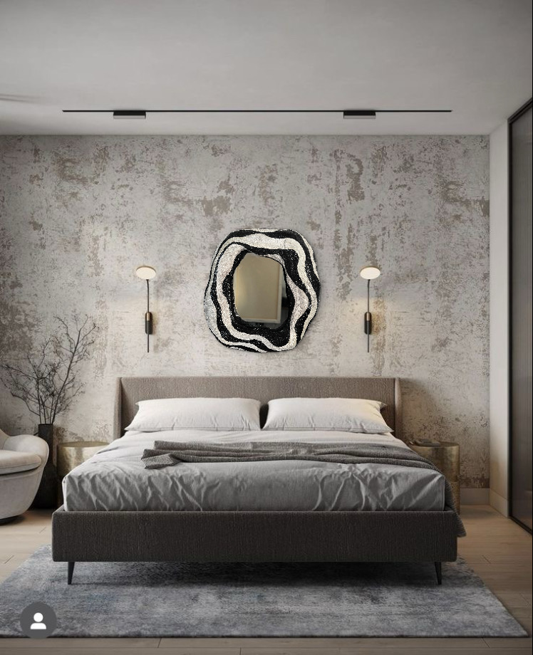 Это идеальный фон для ярких акцентов. На бетонных стенах 2026-го будут появляться золотые линии, бирюзовые фрагменты, световые орнаменты — и именно благодаря серому они засияют магией.