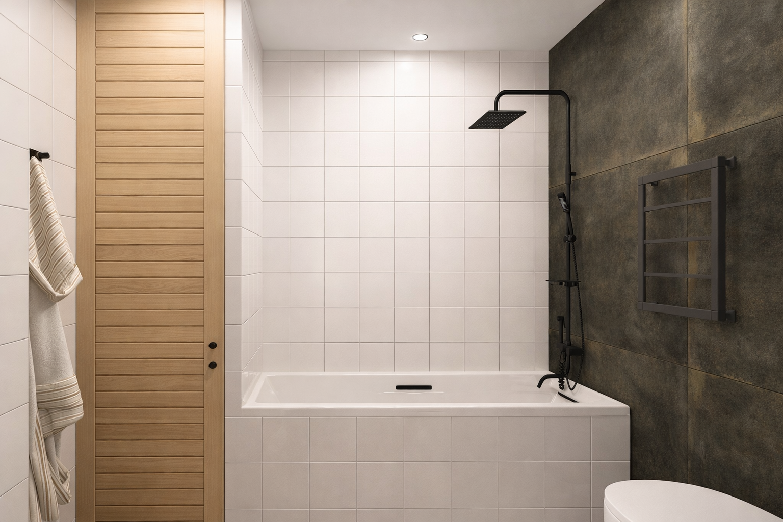 Живу в квартире такого типа ( до перепланировки). Не понимаю, каким образом коммуникации (стояки с 2 трубами холодная и горячая вода, канализация и труба с отоплением), которые после сноса общей стены между ванной и туалетом находящиеся по середине полученного пространства оказались справой стороны? Их перенос на правую сторону должен был существенно съесть пространство, ванная 160 см не могла бы поместиться, если стена из темного керамогранита представлена как единое целое пространство без каких либо выступов и ниш. В остальном все логично. Хотя не понятно зачем перепланировка если по итогу размер обеденной зоны так и не увеличился, спальных мест в трех комнатах (на 6 человек), а обеденная как была для для 2-х человек, так для двух и осталась.