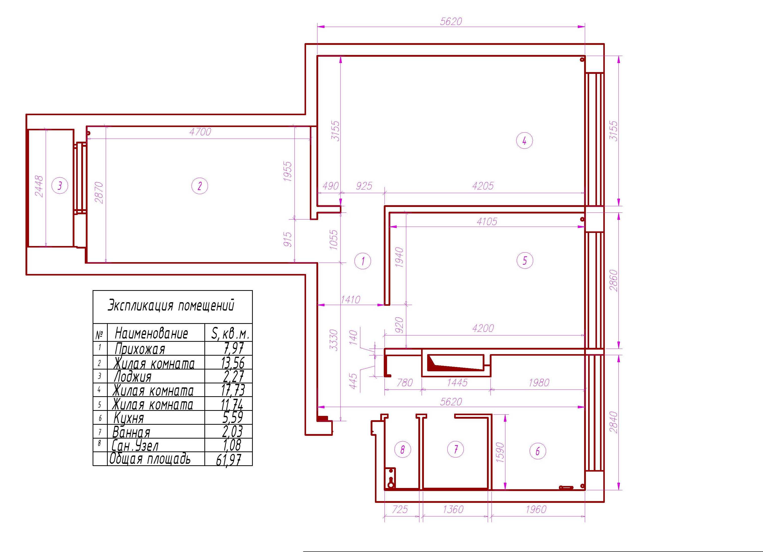 В результате работы планировка имеет следущие изменения: С/у объеденён и увеличен за счет коридора, ведущего на кухню. Выделено место под небольшой, встроенный шкаф в прихожей. Вход на кухню перенесен их коридора в гостиную и за счёт этого изменения кухня стала более функциональной. Запланирована гардеробная в одной из комнат.