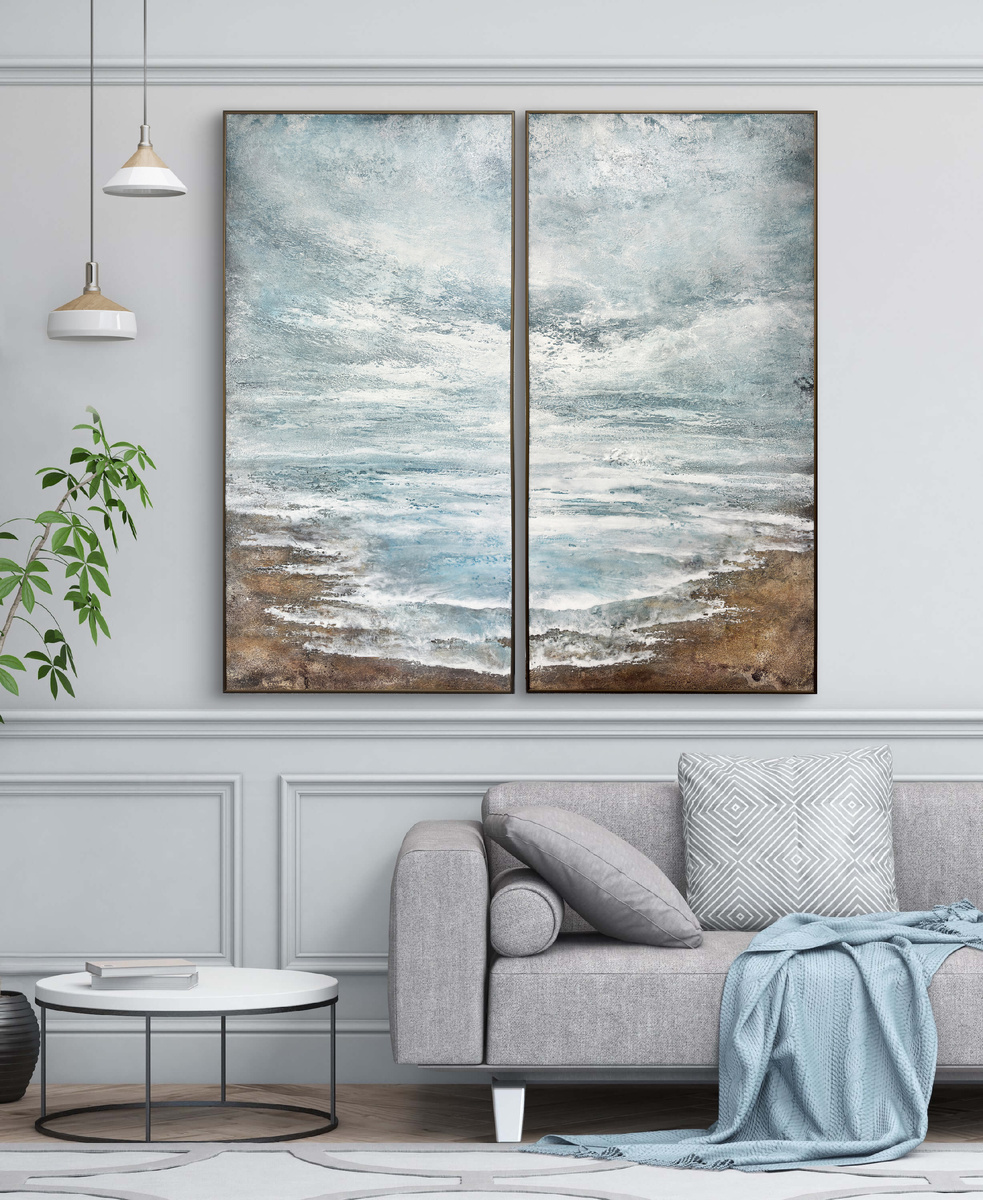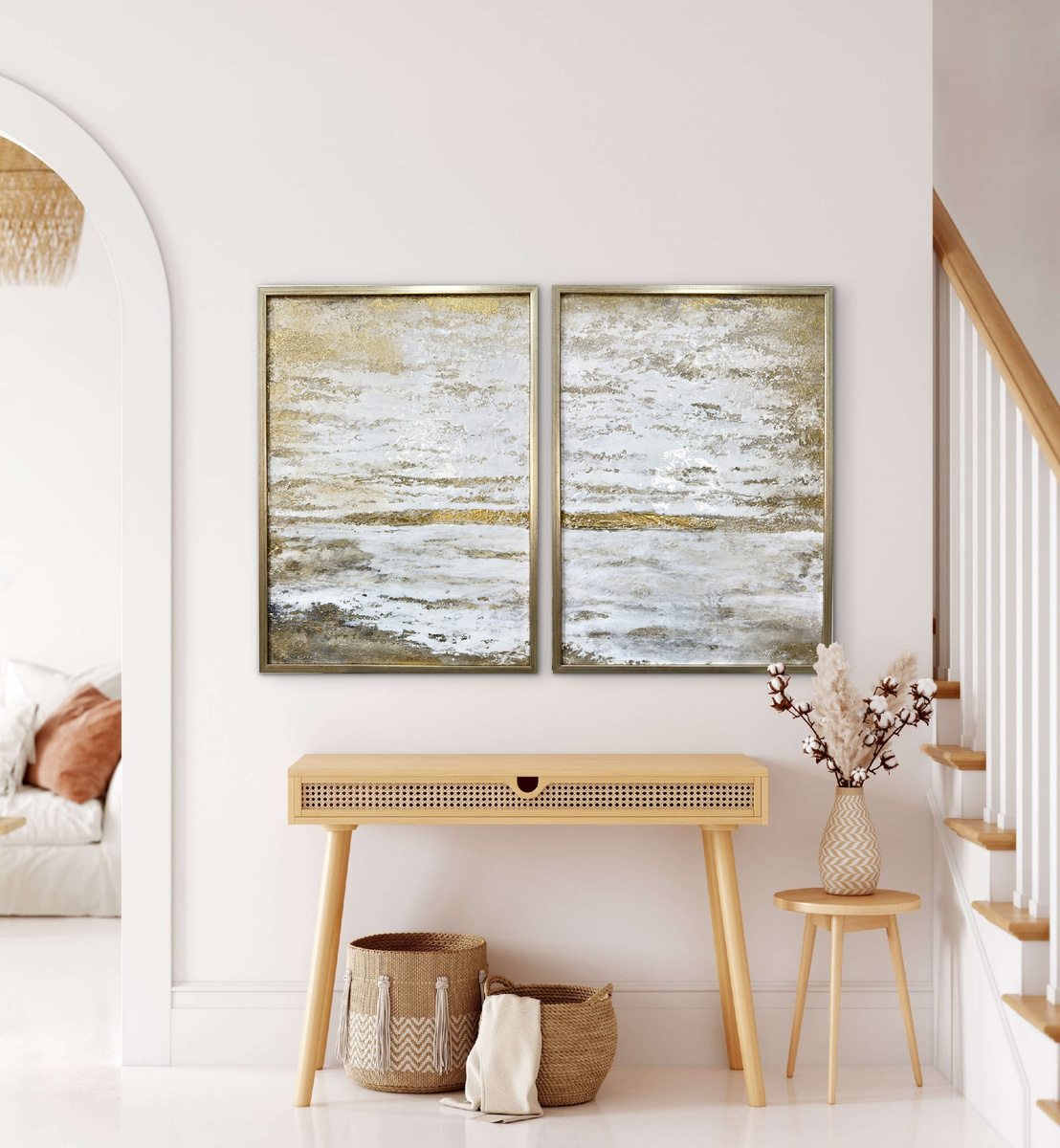 Я люблю вписывать в сканди картины в минималистичной цветовой гамме, но с фактурой. Так они становятся акцентом, который не спорит с простотой, а дополняет её.