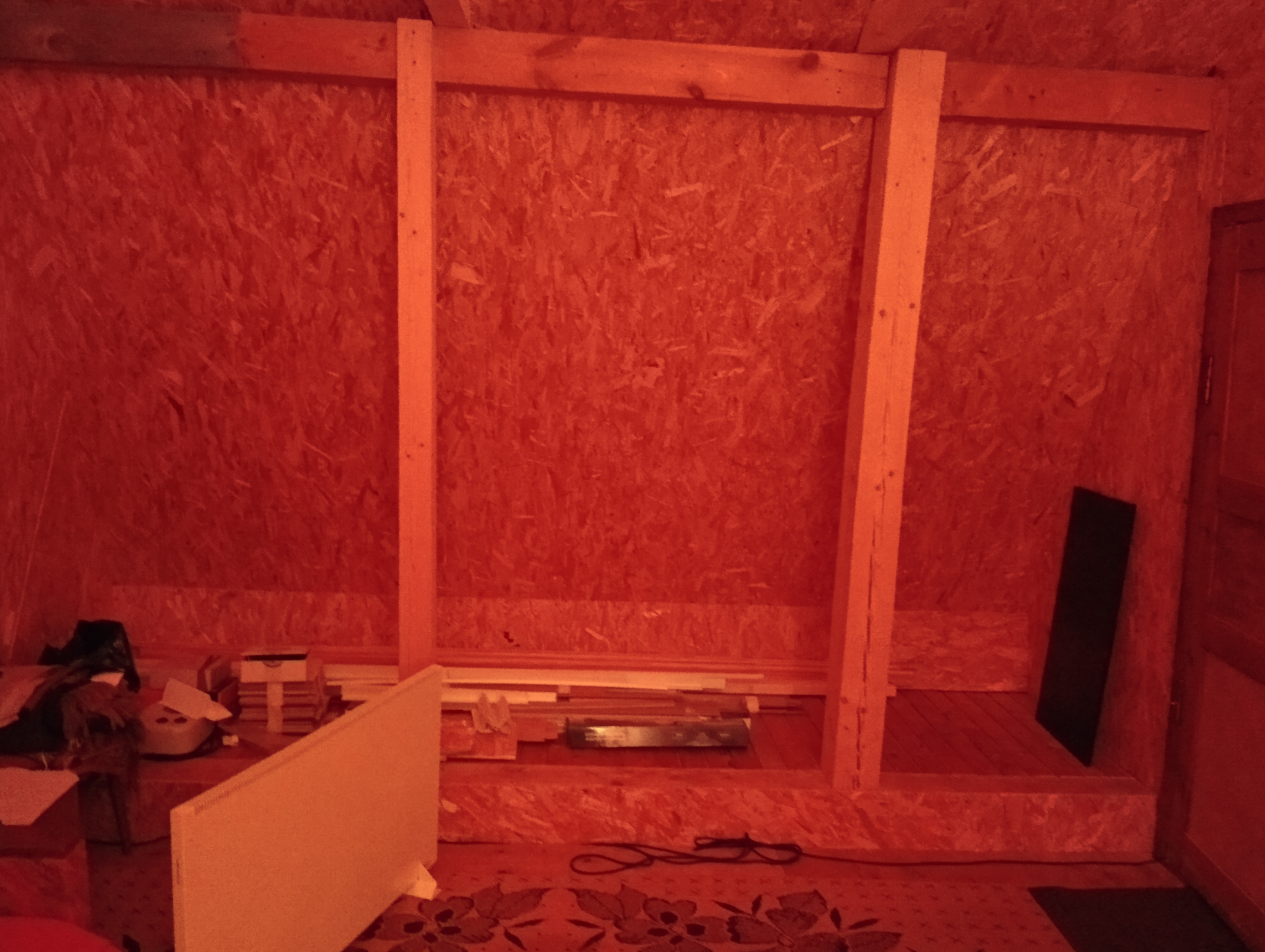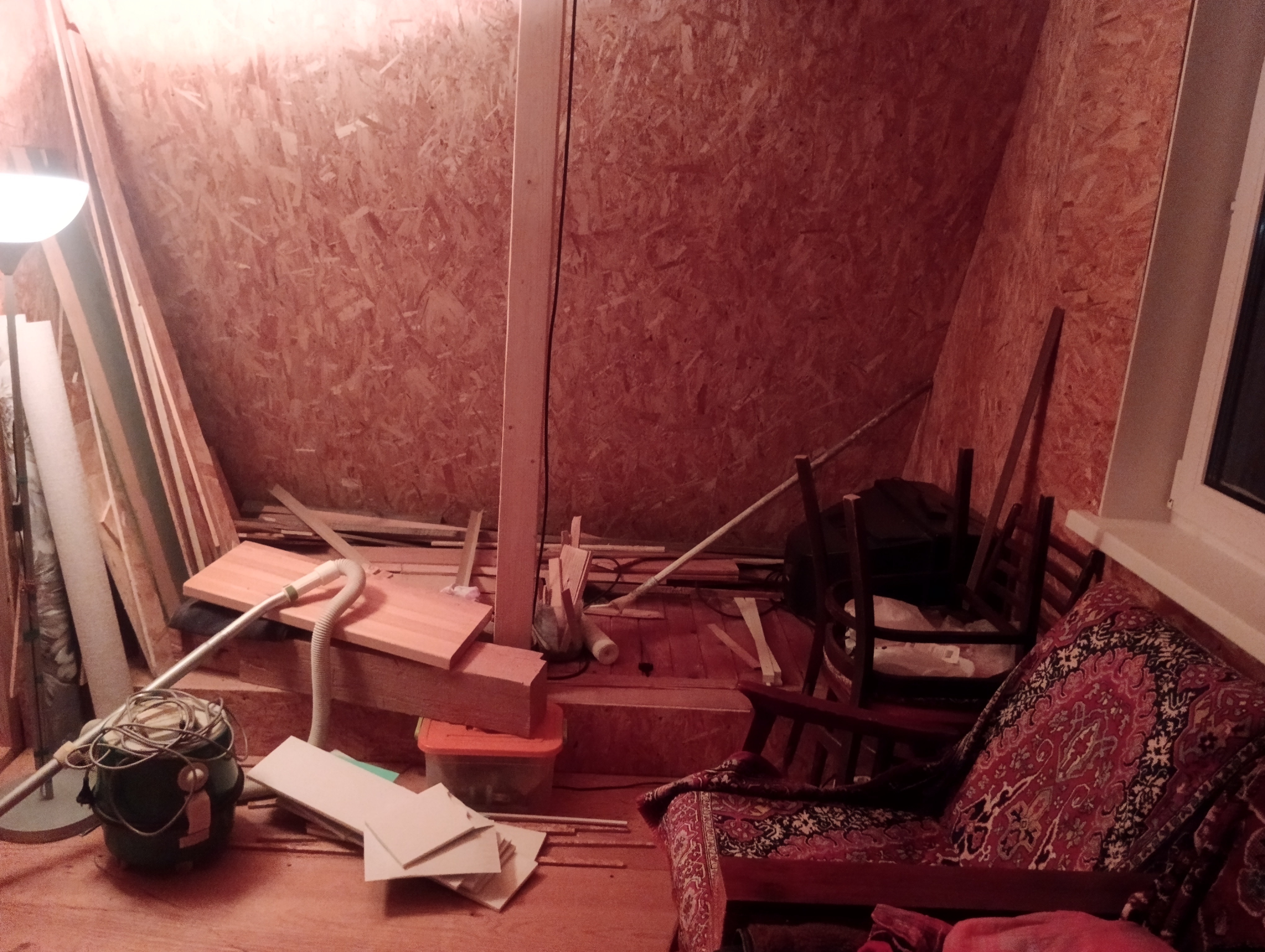 Переделываем сами дачу. Постарались учесть все "косяки" старого дома. Никак не можем правильно обыграть ниши. Две, темные на фото, это планируется,кабинет рукоделия. Тут хотелось сделать стол для работы. На фото не видно но ниша не ровно с полом, выше на 20 см. Там идёт брус несущий