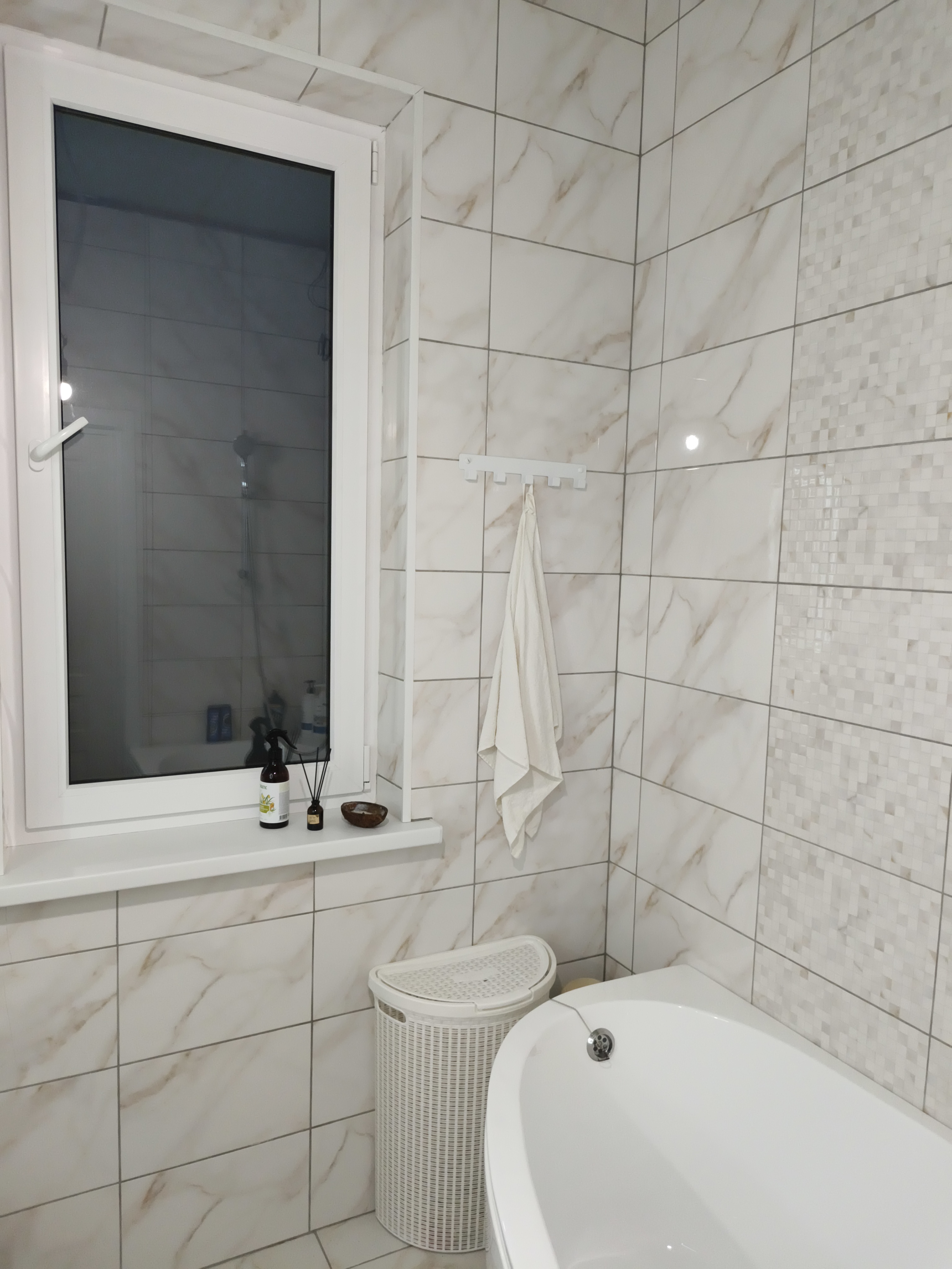Здравствуйте, крик души.... Мы построили дом, застройщик посоветовал своего плиточника, он оказался не совсем профессионалом, было 3 вида плитки, и фотографии , как правильно укладывать плитку, но сделал совсем не то что нужно, даже затирку швов сделал серую вместо светлой! На окно прилепил пластиковый уголок (колхозный) я плакала месяц, под окном лопнула плитка, сейчас как захожу его всё время вспоминаю! Помогите советом 🙏 может можно ,как то интерьером спрятать все эти косяки плиточника!