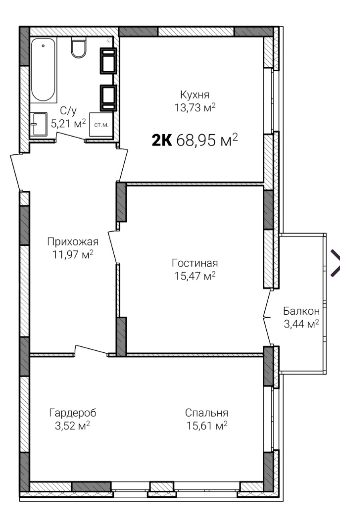 Задача у нас такая: иметь кухню гостиную, желательно большую, спальню с кроватью шириной не менее 160 см, отдельную детскую, которая должна при желании вместить 2х детей (пока у нас 1 ребенок). Важно, чтобы площадь спальни в теории могла вместить детскую кроватку для новорожденного